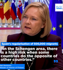 EuropePolitique La ministre finlandaise de l’Intérieur, à l’origine d’un durcissement de la politique migratoire dans son pays, évoque l’échec des retours des migrants dans leurs pays d’origine, et critique la régularisation par l’Espagne de 500.000 migrants clandestins EuropePolitique La ministre finlandaise de l’Intérieur, à l’origine d’un durcissement de la politique migratoire dans son pays, évoque l’échec des retours des migrants dans leurs pays d’origine, et critique la régularisation par l’Espagne de 500.000 migrants clandestins