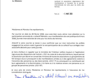 PolitiqueSociété Manifestations du 8 mars : Laurent Nuñez passe consigne aux préfets d’écarter le collectif Némésis et envisage sa dissolution PolitiqueSociété Manifestations du 8 mars : Laurent Nuñez passe consigne aux préfets d’écarter le collectif Némésis et envisage sa dissolution
