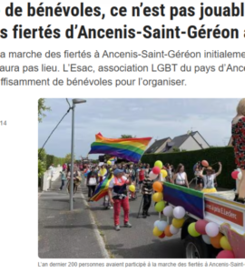 SécuritéSociété Ancenis (44) : Ouest-France annonce l’annulation de la marche des fiertés ‘faute de bénévoles’, sans rappeler que son ancien organisateur, Pierre-Alain Cottineau, candidat LFI, est incarcéré pour des soupçons de viols et tortures sur mineurs SécuritéSociété Ancenis (44) : Ouest-France annonce l’annulation de la marche des fiertés ‘faute de bénévoles’, sans rappeler que son ancien organisateur, Pierre-Alain Cottineau, candidat LFI, est incarcéré pour des soupçons de viols et tortures sur mineurs