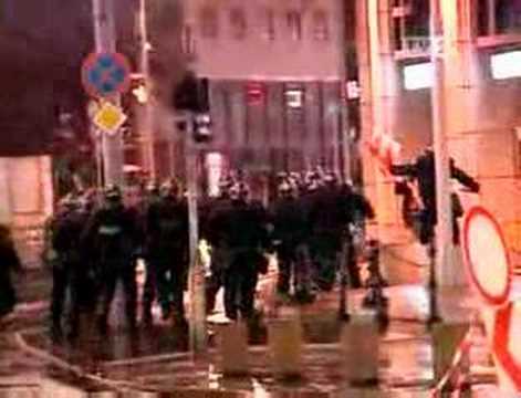 Des jeunes lançaient des pierres sur des immeubles pour en briser les vitres et ont dressé des barricades pour freiner l’avancée des policiers. Les policiers tentaient en vain de les disperser à coups de gaz lacrymogènes.