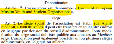 Pour la Commission européenne l’ONG proche des Frères musulmans FEMYSO (#joyinhijab) joue un rôle très important pour les institutions européennes et le CCIB n’aurait pas de liens avec le CCIF ni la même adresse que le FEMYSO