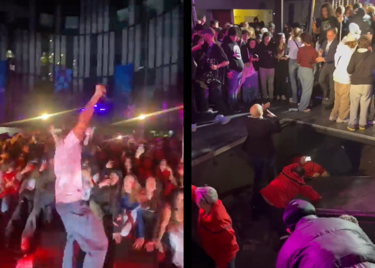 Au milieu de la foule, des dizaines de personnes viennent de chuter de 1,40 m. Le sol s’est dérobé sous leurs pieds. D’après la préfecture de police de Paris, la dalle a cédé sous le poids des spectateurs, « alors qu’il y avait un pogo », raconte au Parisien Cécile, témoin de la scène.