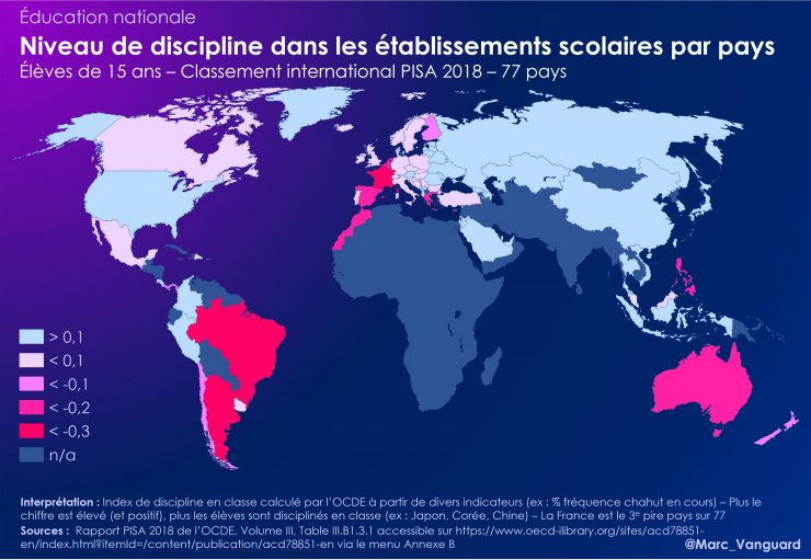 En termes de discipline en classe, la France a le 3e pire score sur les 77 pays évalués par l'enquête PISA.