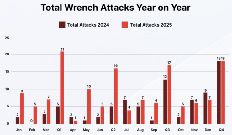 Les attaques criminels dans le domaine des cryptomonnaies ont augmenté de 75 % en 2025, avec 72 incidents confirmés impliquant des violences physiques pour voler des cryptomonnaies.