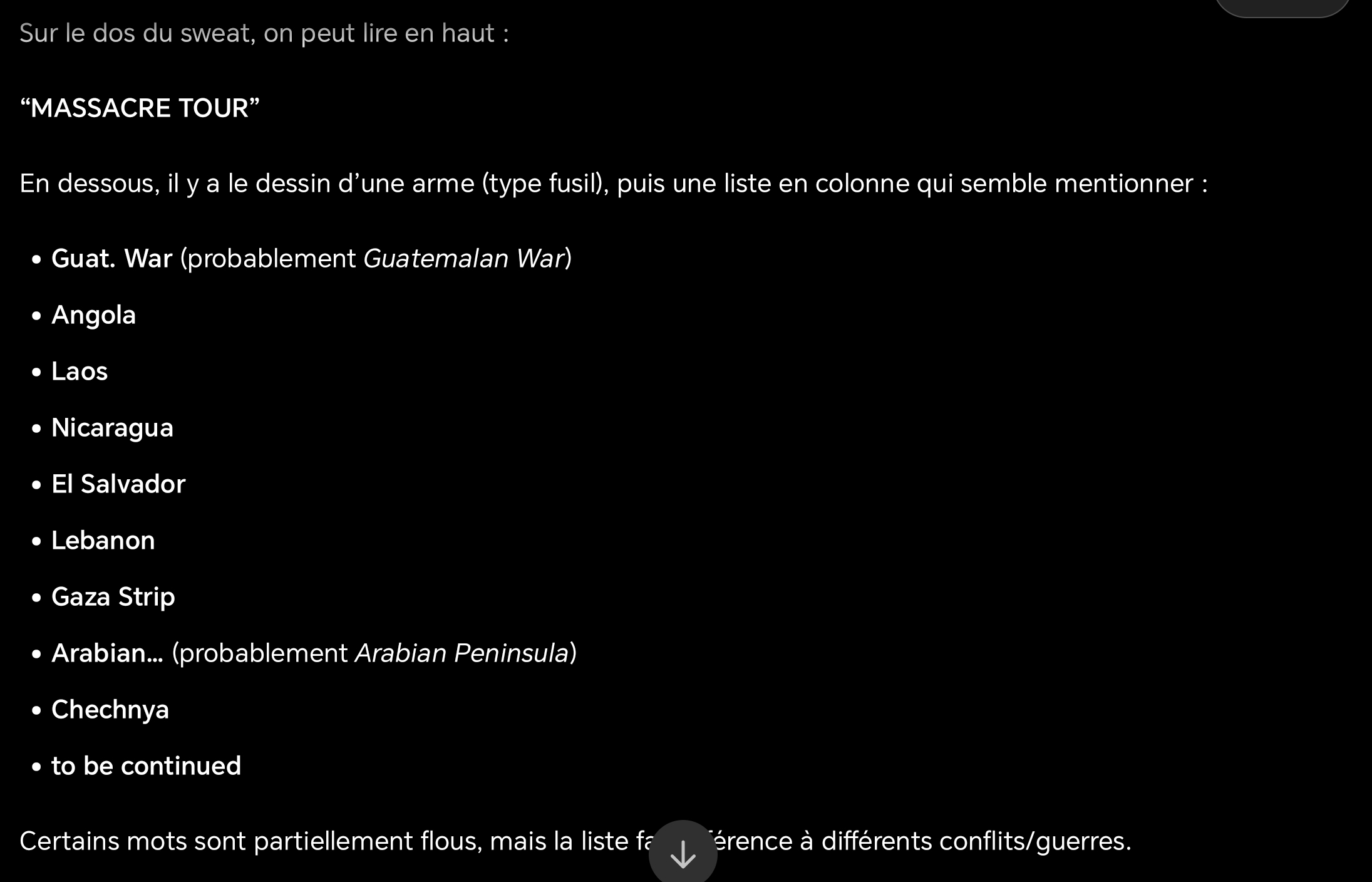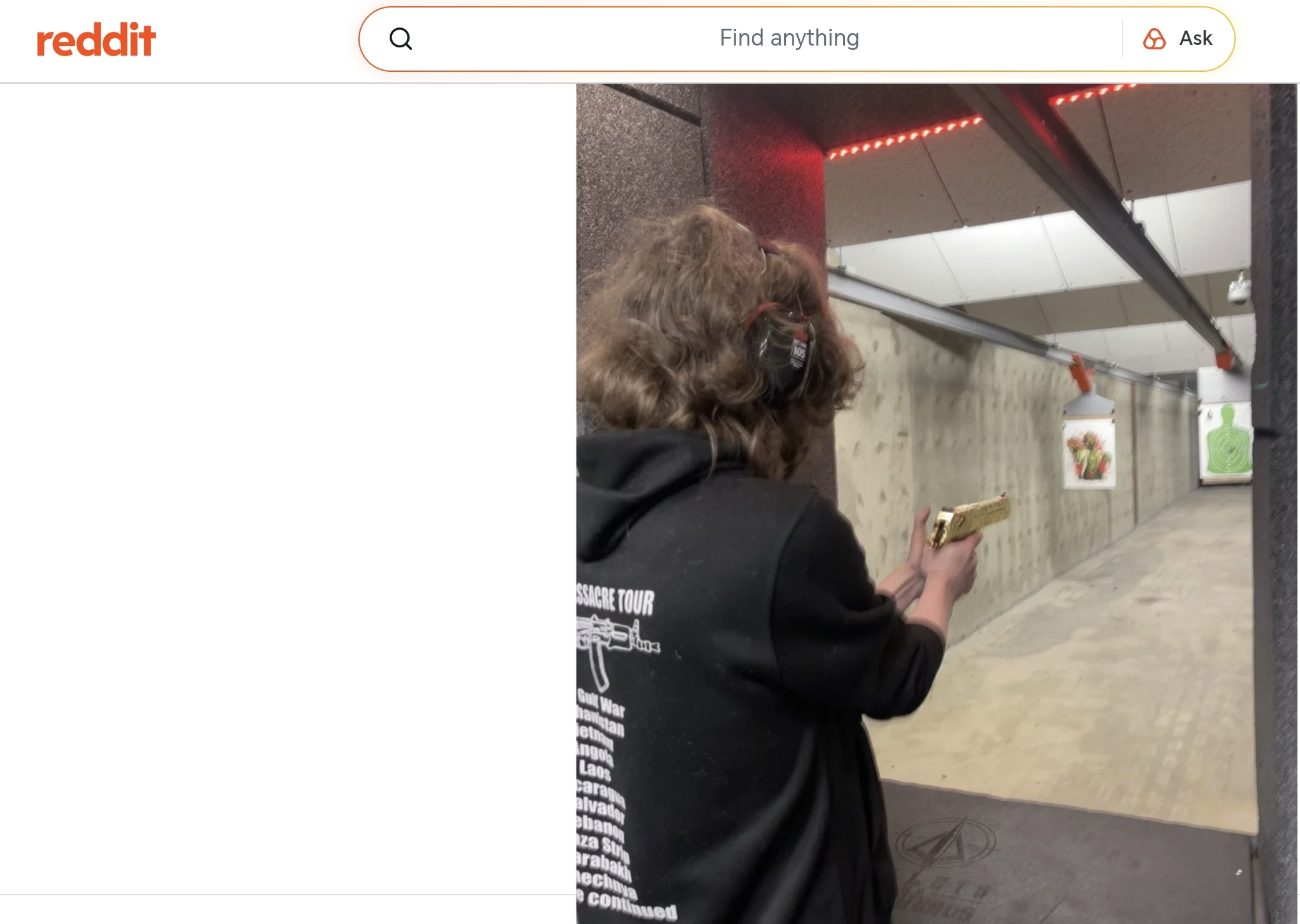 Fin 2023, il a posté une photo de lui dans un stand de tir avec, en description, « J’ai fait exploser leur Desert Eagle ! », et portant un sweat où il évoque un « Massacre Tour » de l’armée états-unienne dans différents pays du monde.