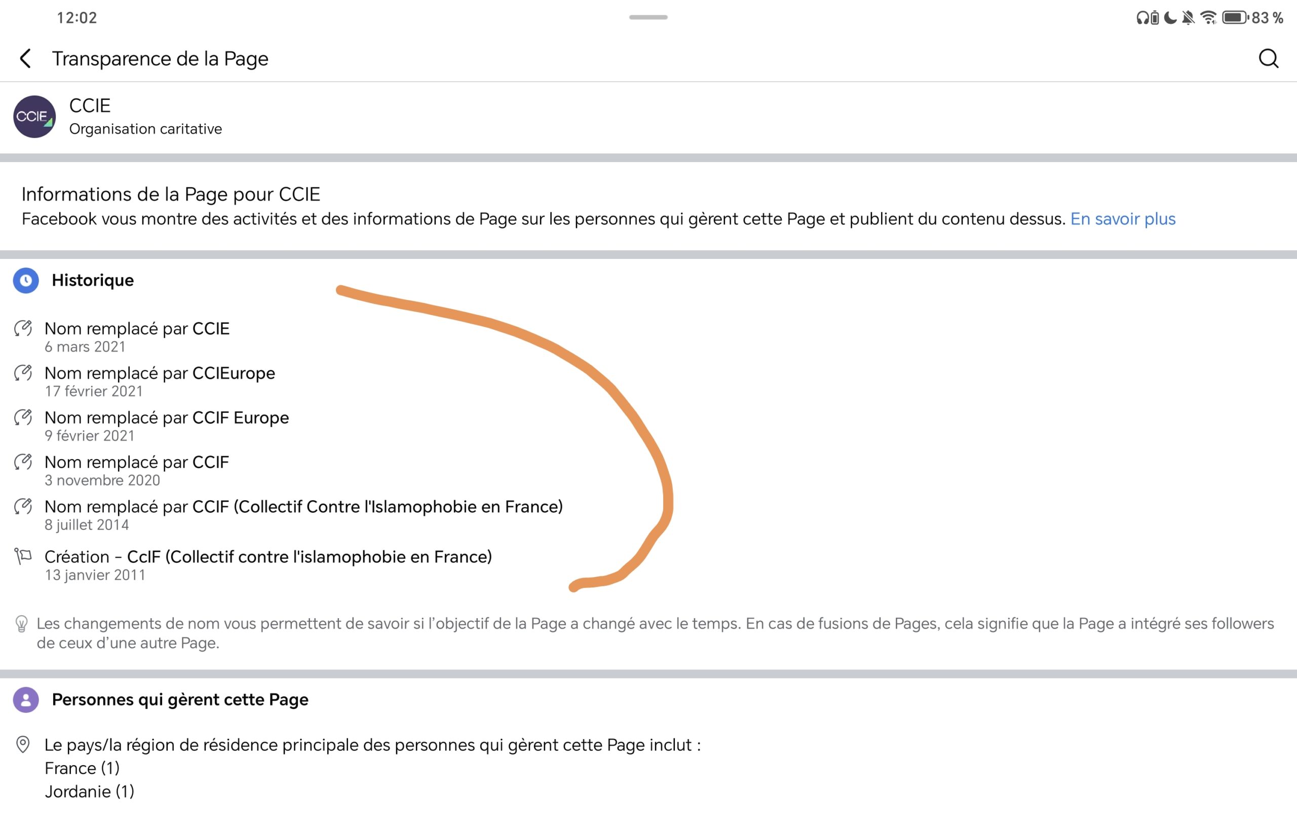 Le CCIE utilise l’ancienne page Facebook du CCIF en gardant tous ses anciens abonnés :