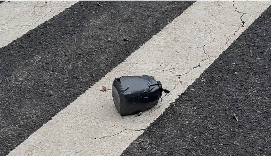 L’équipe de déminage a répondu et examiné les deux engins, déterminant provisoirement qu’ils étaient légèrement plus petits qu’un ballon de football, semblaient être un bocal enveloppé de ruban noir contenant des boulons, des vis et un fusible de hobby pouvant être allumé, a précisé Tisch.