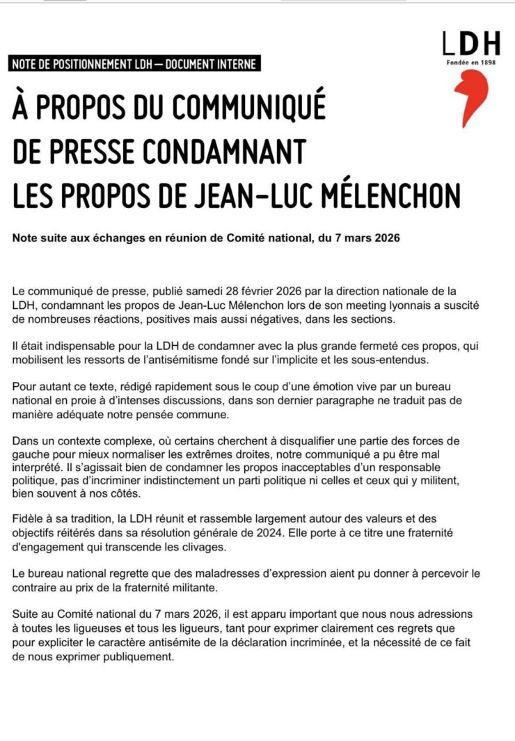 Politique La Ligue des droits de l’homme exprime des regrets pour des « maladresses d’expression » après son communiqué condamnant les propos antisémites de Jean-Luc Mélenchon Francois13/03/2026 à 23h20 Le Conseil constitutionnel censure totalement la confiscation obligatoire de certains biens en matière de trafic de stupéfiants L’affaire de l’Observatoire : quand François Mitterrand inventait un attentat contre lui-même