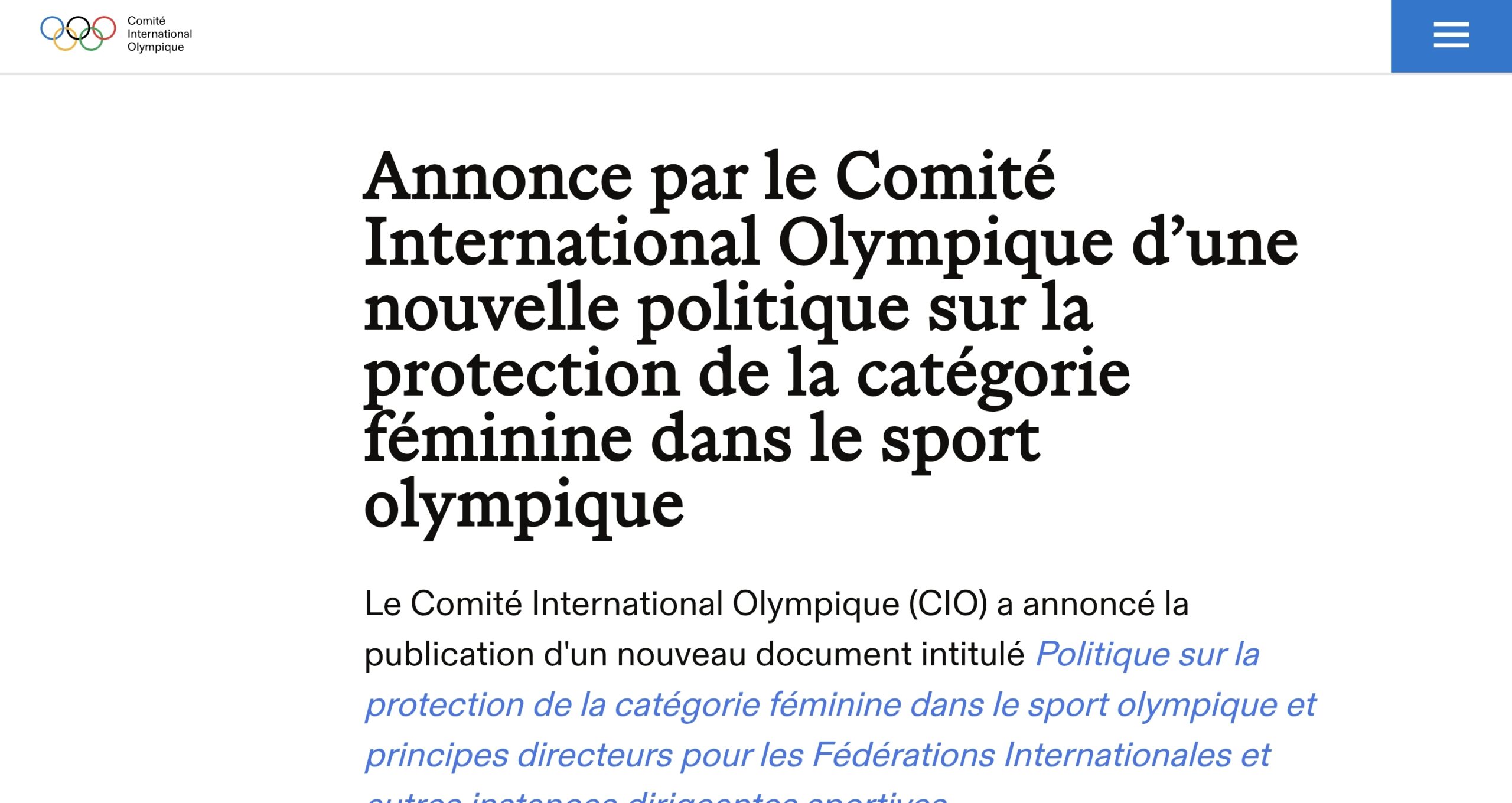 ➡️ L'admissibilité aux compétitions olympiques féminines "est désormais réservée aux personnes de sexe biologique féminin", non-porteuses du gène SRY, a expliqué le CIO, bannissant à la fois les sportives transgenres et une grande partie des athlètes intersexes. pic.twitter.com/dh2NXxW991