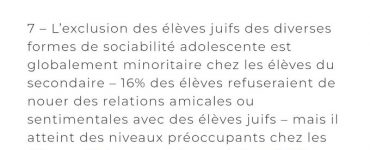 Société 16% des élèves refusent d’avoir un ami juif, un rejet qui grimpe à 52% chez ceux de culture exclusivement extra-européenne et à 45% chez les élèves musulmans