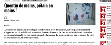 Sécurité Après le meurtre de Quentin, un texte publié sur le site antifa lyonnais revendique la violence; la préfète saisit la justice pour soupçons de reconstitution d’un groupe dissous (MàJ)