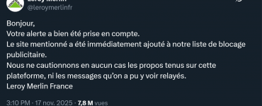 MédiasPolitique Leroy Merlin cède à l’extrême gauche en supprimant ses publicités sur le site internet de Frontières. Un appel massif au boycott de l’enseigne s’organise sur les réseaux sociaux