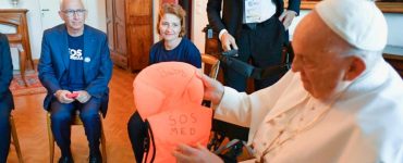 Politique Marseille : le pape François reçoit en privé les bénévoles de SOS Méditerranée qui gère le navire Ocean Viking ; un gilet de sauvetage qui a sauvé des « centaines » de migrants en Méditerranéen remis au souverain pontife