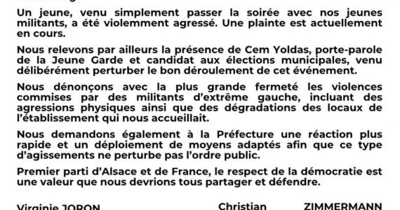 Politique Strasbourg (67) : le RN accuse Actu Strasbourg et Cem Yoldas, porte-parole de la Jeune Garde et candidat municipal, après des incidents lors d’une venue de Jordan Bardella Politique Strasbourg (67) : le RN accuse Actu Strasbourg et Cem Yoldas, porte-parole de la Jeune Garde et candidat municipal, après des incidents lors d’une venue de Jordan Bardella