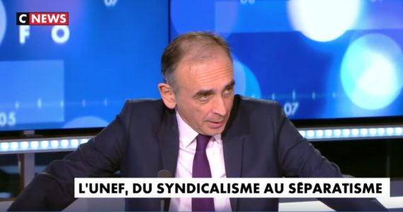 Société Zemmour : “L’Unef interdit les Blancs à des réunions. Si Darmanin est cohérent avec lui-même, il doit dissoudre. Il a bien dissous Génération identitaire pour trois fois rien” Société Zemmour : “L’Unef interdit les Blancs à des réunions. Si Darmanin est cohérent avec lui-même, il doit dissoudre. Il a bien dissous Génération identitaire pour trois fois rien”