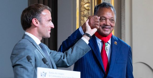 19/07/2021 Paris – Emmanuel Macron a remis lundi les insignes de commandeur de la Légion d’honneur au révérend Jesse Jackson, “défenseur infatigable” de la communauté noire américaine et des...