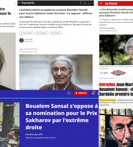 Politique Boualem Sansal ne s’est jamais opposé à être proposé par le RN pour le prix Sakharov, contrairement à ce qu’avait annoncé son éditeur Gallimard, relayé par tous les médias français Politique Boualem Sansal ne s’est jamais opposé à être proposé par le RN pour le prix Sakharov, contrairement à ce qu’avait annoncé son éditeur Gallimard, relayé par tous les médias français