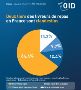 Société La quasi-totalité des livreurs de repas pour des plateformes numériques sont des immigrés récents. Deux tiers des livreurs sont en situation irrégulière. (OID) Société La quasi-totalité des livreurs de repas pour des plateformes numériques sont des immigrés récents. Deux tiers des livreurs sont en situation irrégulière. (OID)