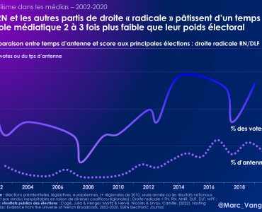MédiasPolitique Pluralisme dans les médias (2002-2020) : le RN et les autres partis de droite radicale ont un temps de parole médiatique 2 à 3x plus faible que leur poids électoral. Découvrez d’autres données ! MédiasPolitique Pluralisme dans les médias (2002-2020) : le RN et les autres partis de droite radicale ont un temps de parole médiatique 2 à 3x plus faible que leur poids électoral. Découvrez d’autres données !