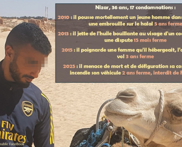 Société Douarnenez (29) : bien connu de la justice, Nizar, 36 ans, menace de mort sa conjointe en lui promettant “du sang et de la défiguration” puis incendie sa voiture et 4 autres véhicules. 2 ans ferme et interdiction de Finistère pour 3 ans (màj) Société Douarnenez (29) : bien connu de la justice, Nizar, 36 ans, menace de mort sa conjointe en lui promettant “du sang et de la défiguration” puis incendie sa voiture et 4 autres véhicules. 2 ans ferme et interdiction de Finistère pour 3 ans (màj)