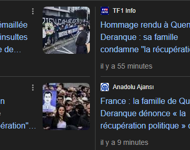 MédiasSécuritéSociété Marche pour Quentin : la famille remercie les participants venus dans une démarche sincère et digne tout en condamnant les débordements et la récupération. La totalité des médias récupèrent en n’évoquant pas les remerciements. MédiasSécuritéSociété Marche pour Quentin : la famille remercie les participants venus dans une démarche sincère et digne tout en condamnant les débordements et la récupération. La totalité des médias récupèrent en n’évoquant pas les remerciements.