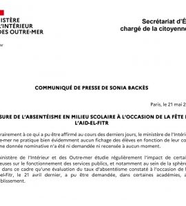 PolitiqueSociété Évaluation du taux d’absentéisme pendant le l’Aïd-al-Fitr : l’Intérieur dément un fichage ; « aucune donnée nominative n’a été ni demandée ni recensée à aucun moment » PolitiqueSociété Évaluation du taux d’absentéisme pendant le l’Aïd-al-Fitr : l’Intérieur dément un fichage ; « aucune donnée nominative n’a été ni demandée ni recensée à aucun moment »