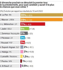Politique Le Pen (+6.5), Macron (+1.2), Mélenchon (-4.5)… Pour qui voteriez-vous si la présidentielle avait lieu aujourd’hui ? (Sondage ifop) Politique Le Pen (+6.5), Macron (+1.2), Mélenchon (-4.5)… Pour qui voteriez-vous si la présidentielle avait lieu aujourd’hui ? (Sondage ifop)