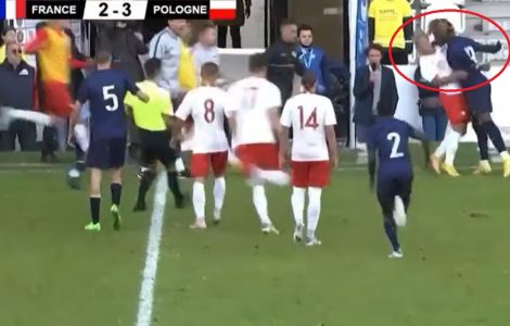 Sport Déjà réduits à 8 après l’expulsion de 3 joueurs, les “Bleuets” (l’équipe de France de football des moins de 18 ans) sont contraints d’abandonner le match après le coup de tête de D. Bile à un joueur Polonais Sport Déjà réduits à 8 après l’expulsion de 3 joueurs, les “Bleuets” (l’équipe de France de football des moins de 18 ans) sont contraints d’abandonner le match après le coup de tête de D. Bile à un joueur Polonais