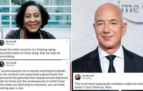 Société Jeff Bezos tacle l’universitaire “progressiste” Uju Anya qui a déclaré à propos d’Elizabeth II : “Que sa douleur soit atroce” (Màj) Société Jeff Bezos tacle l’universitaire “progressiste” Uju Anya qui a déclaré à propos d’Elizabeth II : “Que sa douleur soit atroce” (Màj)